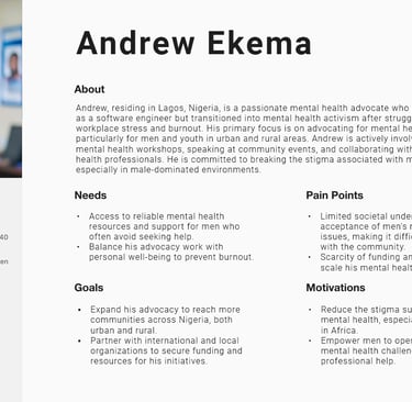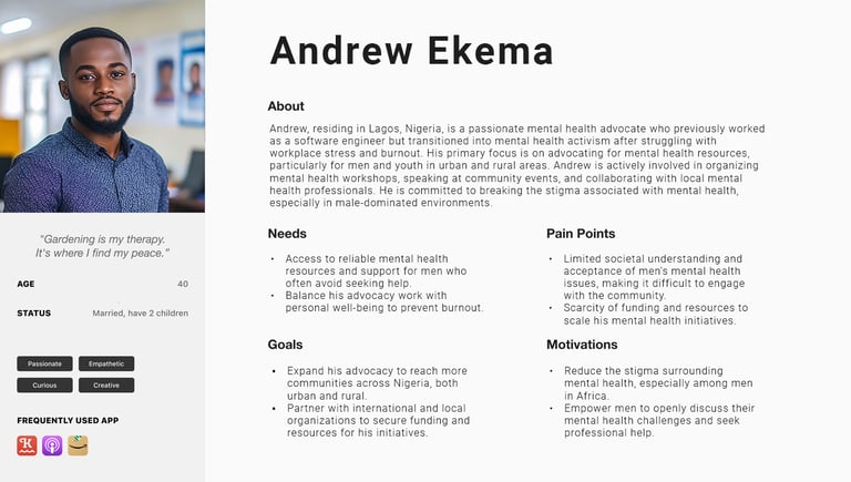 Our objective is to identify the present challenges and issues users encounter in relation to mental health in Africa.This initiative aims to gather ideas and insights on features addressing the societal problem of mental health stigma and the lack of resources for individual users. The following is a summary of my findings: